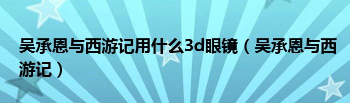 关于吴承恩与西游记用什么3d眼镜,吴承恩与西游记这个很多人还不知道,今天菲菲来为大家解答以上的问题,现在让我们一起来看看吧!