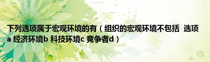关于下列选项属于宏观环境的有,组织的宏观环境不包括 选项 a 经济环境b 科技环境c 竞争者d这个很多人还不知道,今天菲菲来为大家解答以上的问题,现在让我们一起来看看吧!