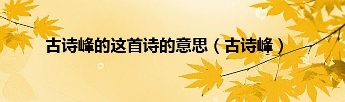 关于古诗峰的这首诗的意思,古诗峰这个很多人还不知道,今天菲菲来为大家解答以上的问题,现在让我们一起来看看吧!