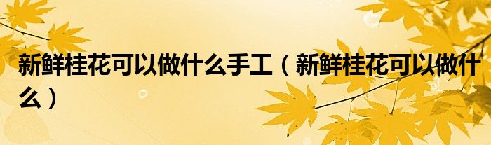 关于新鲜桂花可以做什么手工,新鲜桂花可以做什么这个很多人还不知道,今天菲菲来为大家解答以上的问题,现在让我们一起来看看吧!