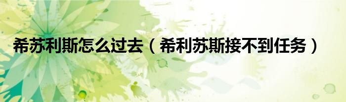 希苏利斯怎么过去(希利苏斯接不到任务)