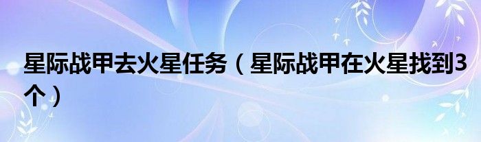 大家好,小晋来为大家解答以下问题,关于星际战甲去火星任务,星际战甲在火星找到3个很多人还不知道,今天让我们一起来看看吧!