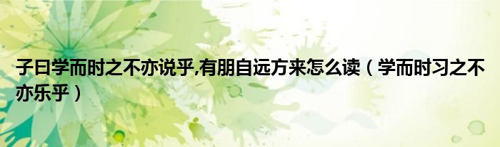 关于子曰学而时之不亦说乎,有朋自远方来怎么读,学而时习之不亦乐乎这个很多人还不知道,今天菲菲来为大家解答以上的问题,现在让我们一起来看看吧!