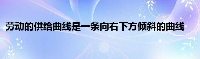 关于劳动的供给曲线是一条向右下方倾斜的曲线这个很多人还不知道,今天菲菲来为大家解答以上的问题,现在让我们一起来看看吧!