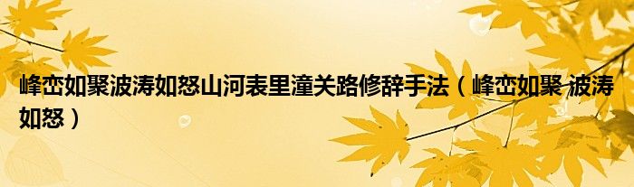 大家好,小晋来为大家解答以下问题,关于峰峦如聚波涛如怒山河表里潼关路修辞手法,峰峦如聚 波涛如怒很多人还不知道,今天让我们一起来看看吧!