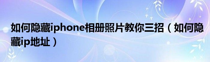 大家好,小飞来为大家解答以上问题,如何隐藏iphone相册照片教你三招,如何隐藏ip地址很多人还不知道,现在让我们一起来看看吧!