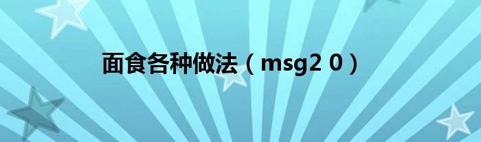 面食各种做法,msg2 0很多人还不知道,乐乐来为大家解答以上问题,现在让我们一起来看看吧!