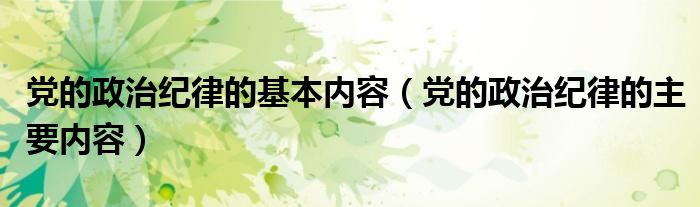 关于党的政治纪律的基本内容,党的政治纪律的主要内容这个很多人还不知道,今天菲菲来为大家解答以上的问题,现在让我们一起来看看吧!