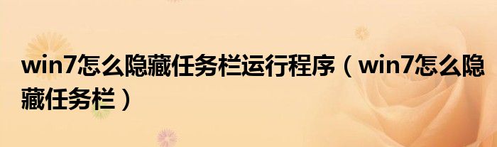 关于win7怎么隐藏任务栏运行程序,win7怎么隐藏任务栏这个很多人还不知道,今天菲菲来为大家解答以上的问题,现在让我们一起来看看吧!