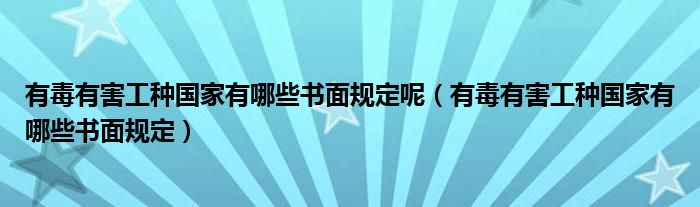 关于有毒有害工种国家有哪些书面规定呢,有毒有害工种国家有哪些书面规定这个很多人还不知道,今天菲菲来为大家解答以上的问题,现在让我们一起来看看吧!