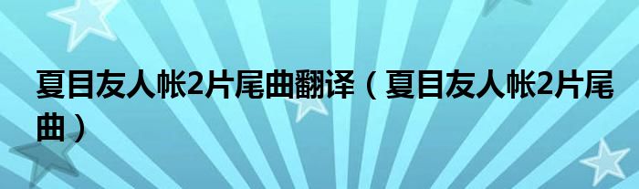 夏目友人帐2片尾曲翻译,夏目友人帐2片尾曲这个很多人还不知道,小飞来为大家解答以上的问题。现在让我们一起来看看吧!