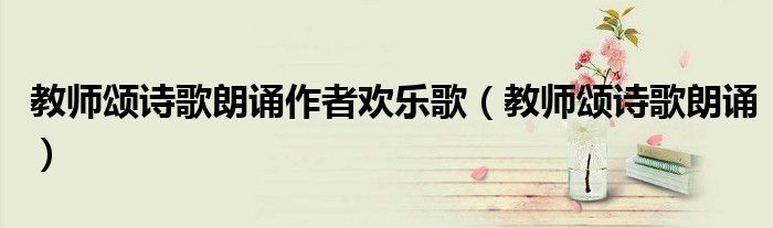 关于教师颂诗歌朗诵作者欢乐歌,教师颂诗歌朗诵这个很多人还不知道,今天菲菲来为大家解答以上的问题,现在让我们一起来看看吧!
