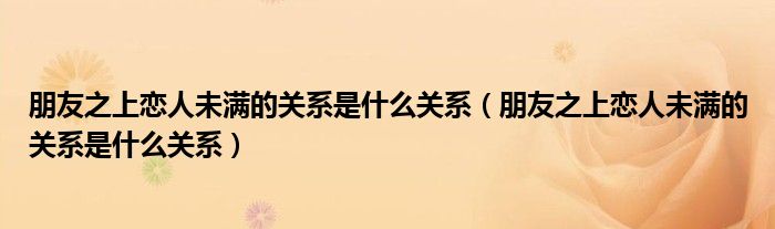 关于朋友之上恋人未满的关系是什么关系,朋友之上恋人未满的关系是什么关系这个很多人还不知道,今天菲菲来为大家解答以上的问题,现在让我们一起来看看吧!