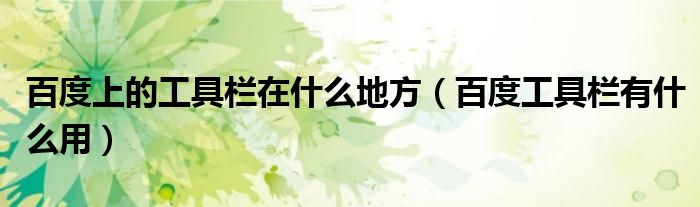 百度上的工具栏在什么地方(百度工具栏有什么用)