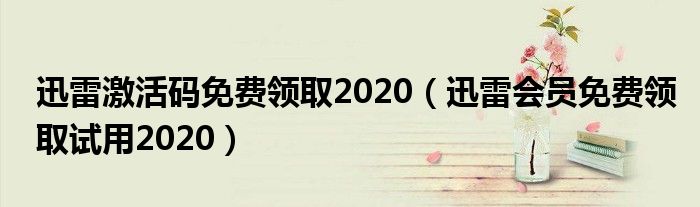 关于迅雷激活码免费领取2020,迅雷会员免费领取试用2020这个很多人还不知道,今天菲菲来为大家解答以上的问题,现在让我们一起来看看吧!