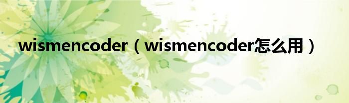 wismencoder,wismencoder怎么用很多人还不知道,乐乐来为大家解答以上问题,现在让我们一起来看看吧!