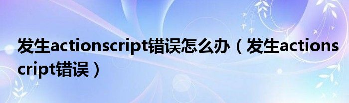 发生actionscript错误怎么办,发生actionscript错误很多人还不知道,乐乐来为大家解答以上问题,现在让我们一起来看看吧!