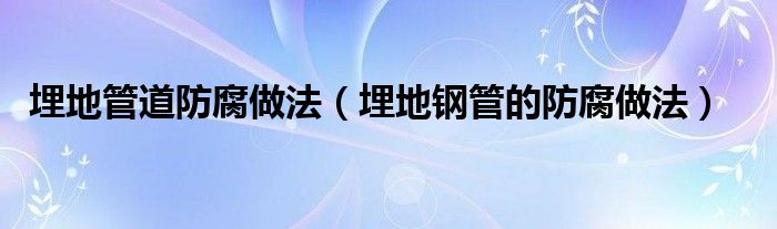 关于埋地管道防腐做法,埋地钢管的防腐做法这个很多人还不知道,今天菲菲来为大家解答以上的问题,现在让我们一起来看看吧!