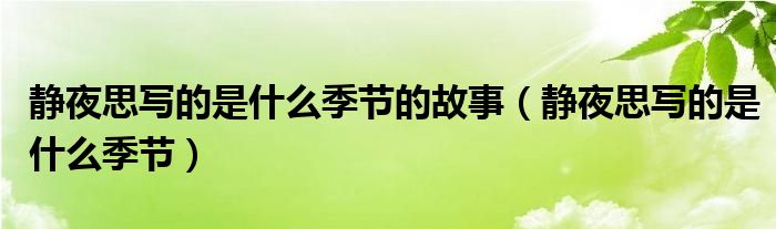 大家好,小晋来为大家解答以下问题,关于静夜思写的是什么季节的故事,静夜思写的是什么季节很多人还不知道,今天让我们一起来看看吧!