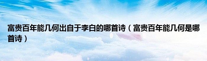 富贵百年能几何出自于李白的哪首诗(富贵百年能几何是哪首诗)