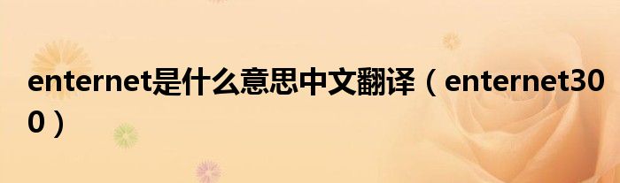 enternet是什么意思中文翻译,enternet300这个很多人还不知道,小飞来为大家解答以上的问题。现在让我们一起来看看吧!