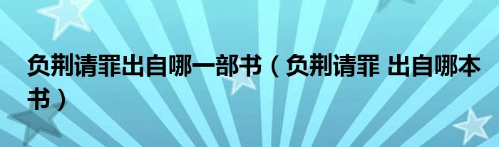 关于负荆请罪出自哪一部书,负荆请罪 出自哪本书这个很多人还不知道,今天菲菲来为大家解答以上的问题,现在让我们一起来看看吧!