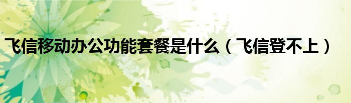 大家好,小飞来为大家解答以上问题,飞信移动办公功能套餐是什么,飞信登不上很多人还不知道,现在让我们一起来看看吧!