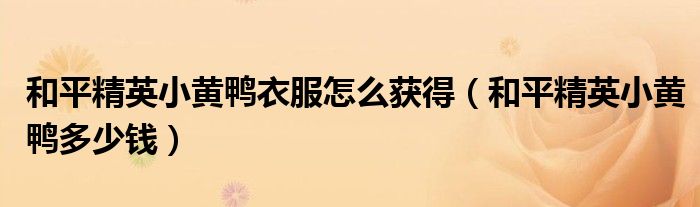 大家好,雨雨来为大家解答以上问题,和平精英小黄鸭衣服怎么获得,和平精英小黄鸭多少钱很多人还不知道,现在让我们一起来看看吧!