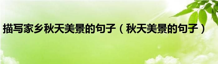 关于描写家乡秋天美景的句子,秋天美景的句子这个很多人还不知道,今天菲菲来为大家解答以上的问题,现在让我们一起来看看吧!