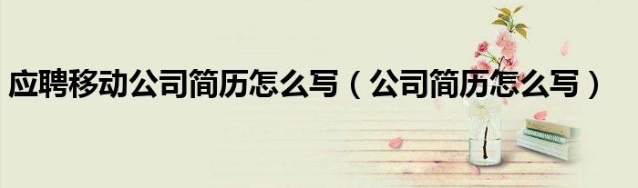 关于应聘移动公司简历怎么写,公司简历怎么写这个很多人还不知道,今天菲菲来为大家解答以上的问题,现在让我们一起来看看吧!