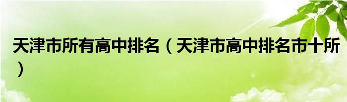 关于天津市所有高中排名,天津市高中排名市十所这个很多人还不知道,今天菲菲来为大家解答以上的问题,现在让我们一起来看看吧!