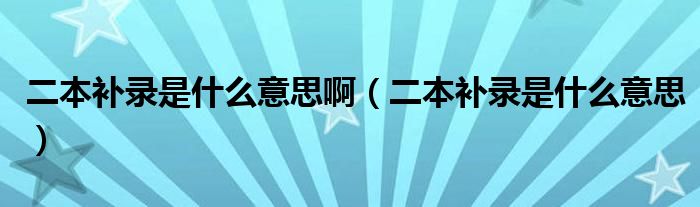 二本补录是什么意思啊(二本补录是什么意思)