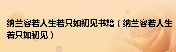 关于纳兰容若人生若只如初见书籍,纳兰容若人生若只如初见这个很多人还不知道,今天菲菲来为大家解答以上的问题,现在让我们一起来看看吧!