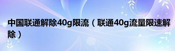 中国联通解除40g限流(联通40g流量限速解除)