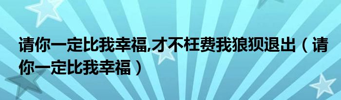 请你一定比我幸福,才不枉费我狼狈退出,请你一定比我幸福这个很多人还不知道,小飞来为大家解答以上的问题。现在让我们一起来看看吧!