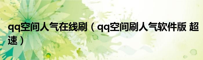 qq空间人气在线刷,qq空间刷人气软件版 超速这个很多人还不知道,小飞来为大家解答以上的问题。现在让我们一起来看看吧!