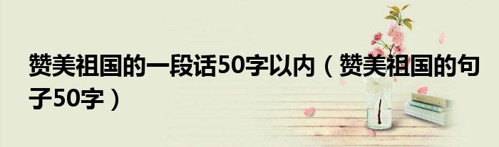 关于赞美祖国的一段话50字以内,赞美祖国的句子50字这个很多人还不知道,今天菲菲来为大家解答以上的问题,现在让我们一起来看看吧!