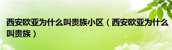 大家好,小晋来为大家解答以下问题,关于西安欧亚为什么叫贵族小区,西安欧亚为什么叫贵族很多人还不知道,今天让我们一起来看看吧!
