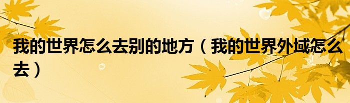 关于我的世界怎么去别的地方,我的世界外域怎么去这个很多人还不知道,今天菲菲来为大家解答以上的问题,现在让我们一起来看看吧!