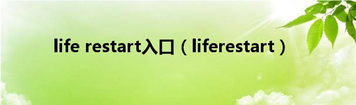 大家好,雨雨来为大家解答以上问题,life restart入口,liferestart很多人还不知道,现在让我们一起来看看吧!