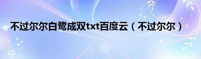 关于不过尔尔白鹭成双txt百度云,不过尔尔这个很多人还不知道,今天菲菲来为大家解答以上的问题,现在让我们一起来看看吧!
