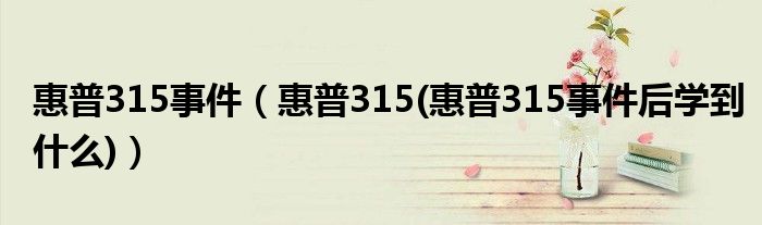 大家好,小常来为大家解答以上问题。惠普315事件,惠普315(惠普315事件后学到什么)很多人还不知道,现在让我们一起来看看吧!