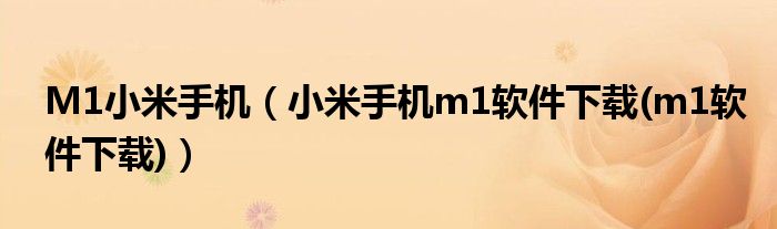 大家好,小常来为大家解答以上问题。M1小米手机,小米手机m1软件下载(m1软件下载)很多人还不知道,现在让我们一起来看看吧!