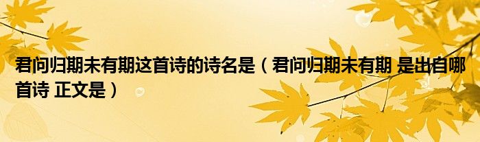 关于君问归期未有期这首诗的诗名是,君问归期未有期 是出自哪首诗 正文是这个很多人还不知道,今天菲菲来为大家解答以上的问题,现在让我们一起来看看吧!