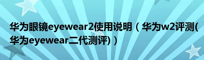 大家好,小常来为大家解答以上问题。华为眼镜eyewear2使用说明,华为w2评测(华为eyewear二代测评)很多人还不知道,现在让我们一起来看看吧!