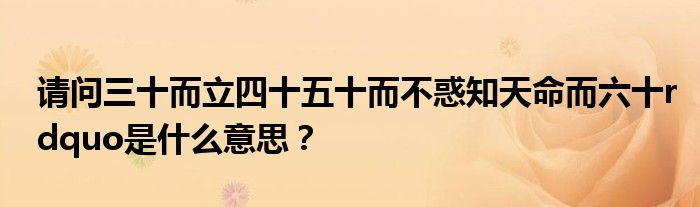 关于请问三十而立四十五十而不惑知天命而六十rdquo是什么意思?这个很多人还不知道,今天菲菲来为大家解答以上的问题,现在让我们一起来看看吧!