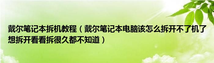 1,戴尔笔记本电脑该怎么拆开不了机了想拆开看看拆很久都不知道:有的螺丝你可能没找到,戴尔有的设计比较强硬是略带技巧的卡入,自己不能拆的时候最好请专业的人拆装。对笔记本我们还是不该这么残忍的(有的笔记本很容易拆比如有几款华硕)