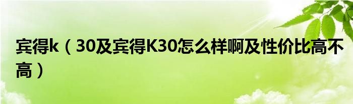 1,宾得K30怎么样啊,性价比高不高?:宾得k30质量是非常优秀的,首先宾得k30搭配了最高的处理器,拥有最先进的s4的处理设备,并且能够在间内进行二次提速,性价比方面是挺不错的,一个性价比可谓是非常高,并且受到了国外技术的帮助,拥有更高强的车轮防控技术,这样的话,使得他在其他的领域上十分好的推荐可以购买,因为它的性价比的话是挺不错的,一般的车的话都需要差不多20多万,他的话只需要十多万就可以了,这样的话,会给那些人对那些没有钱,但是想开好车的人提供很大的帮助。而且也可以,分期付款等等已优惠方式进行购买,这样的话,性价比可谓是非常高的,一般的话,买它是没有错的