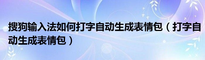 搜狗输入法如何打字自动生成表情包(打字自动生成表情包)