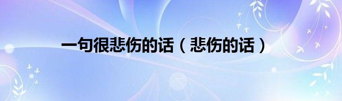 大家好,小晋来为大家解答以下问题,关于一句很悲伤的话,悲伤的话很多人还不知道,今天让我们一起来看看吧!